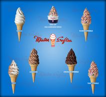 Variety of soft serve ice cream cones available from our food truck.